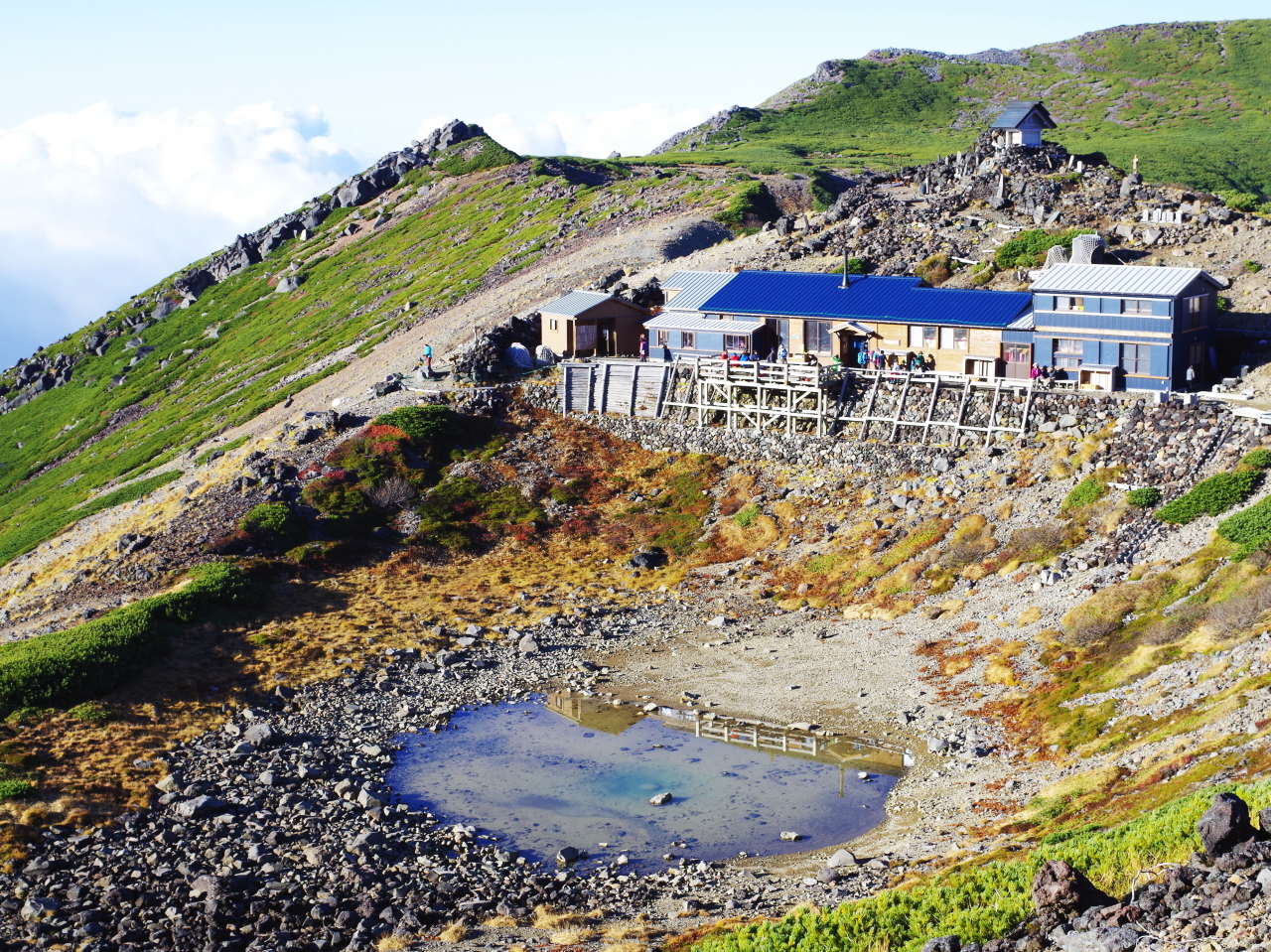 現在、噴火前の5割くらいはお客さんが戻ってきているそうで、想像より多いな!と思いました。私が泊まったその日は小屋の定員いっぱいのお客さんで、今シーズン一番のにぎわいだったそう!「噴火から3年、今こうして五の池小屋の運営が出来ているのも、訪れる人達がいるからこそ」。言葉が身にしみます。10月半ばに入り小屋周辺には積雪が。この週末が今年の最終営業となるそうです。