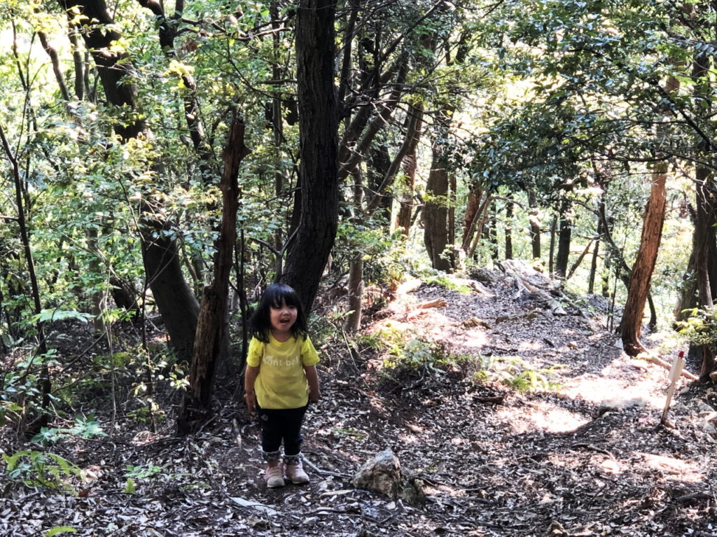 それにしても山に入ってすぐ、強い独特の植物の香りが!何の香りだろうと娘に話しかけたら「どんぐりのにおいだよ」と即答された。私は何か木の匂いかなと思いつつ、「そうか、どんぐりかあ、かおちゃんは詳しいんだね」、「お母さんもかおちゃんも詳しいんだよ」という会話をした。どうやらこれ、まさに満開になっているツブラジイの香りっぽい。ブナ科なのでどんぐりの木だ。娘の言うことが間違っていなかったことに驚いてしまった。