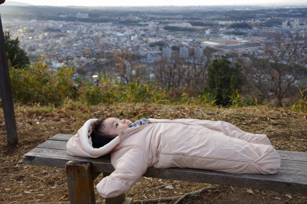 全行程4キロのうち平地はベビーカー。高低差200mの山登りは抱っこ紐、という具合です。アクセスに使った電車がまた子連れ旅の風情を演出♡