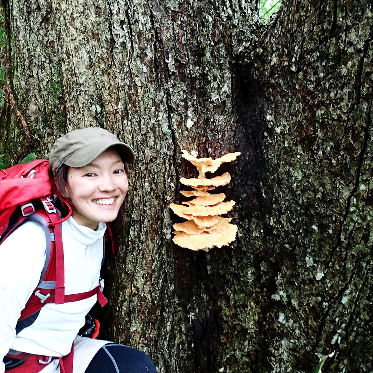 Kさんは北東北と北海道の山をずっと登られているので、私が白山のブナ林と比較すると、興味深そうに聞いてくださった。Kさんは動植物を詳しく教えてくれて、薬草になるものなどは味見もさせてくれた。初めて出会うきのこも多かった(写真はマスタケ)。マタギは、食用キノコを見つけたからといって不必要に採らないし、時期を過ぎていれば、やはり採らない。それは山菜でも、熊猟でも同じだそうだ。そういう理由で目屋のマタギは熊猟を春先の最も熊猟に適した10日間しかしないそう! 1頭も狩れなくても、ピシャッと猟をやめるという。時期を外した狩りや収穫はただの殺しと変わらないという。この日は若いヒラタケだけ採取した。