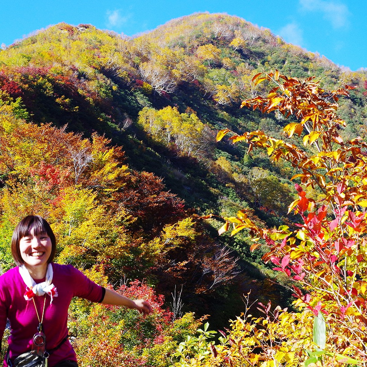 仙人池に向かう道は気持ちのよいブナ林だった!! ブナ林は落葉する樹林帯で、ブナ、カエデ、ミズナラなど黄色をメインカラーに森全体が色付く、日本を代表する美しい自然。木の実やきのこ、生き物もたくさん。昔から、登山をしている人や山に暮らす人は、みんな、ブナ林がだーーーいすき、です!!