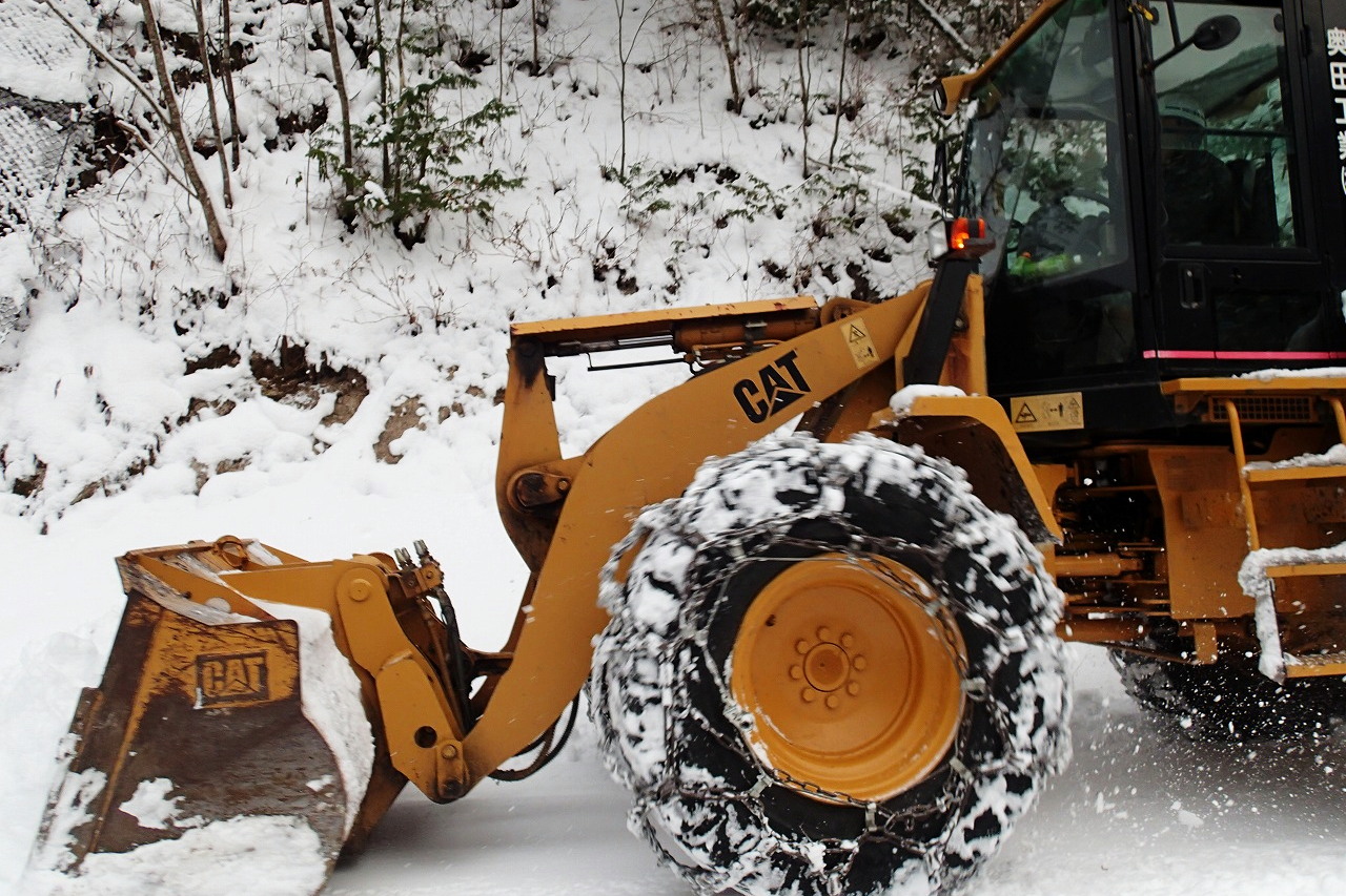帰る途中で下から除雪車が上がってきた! 除雪されたんだから登山口まで行ける。でも…数時間だけでも登れるけど、あきらめた。