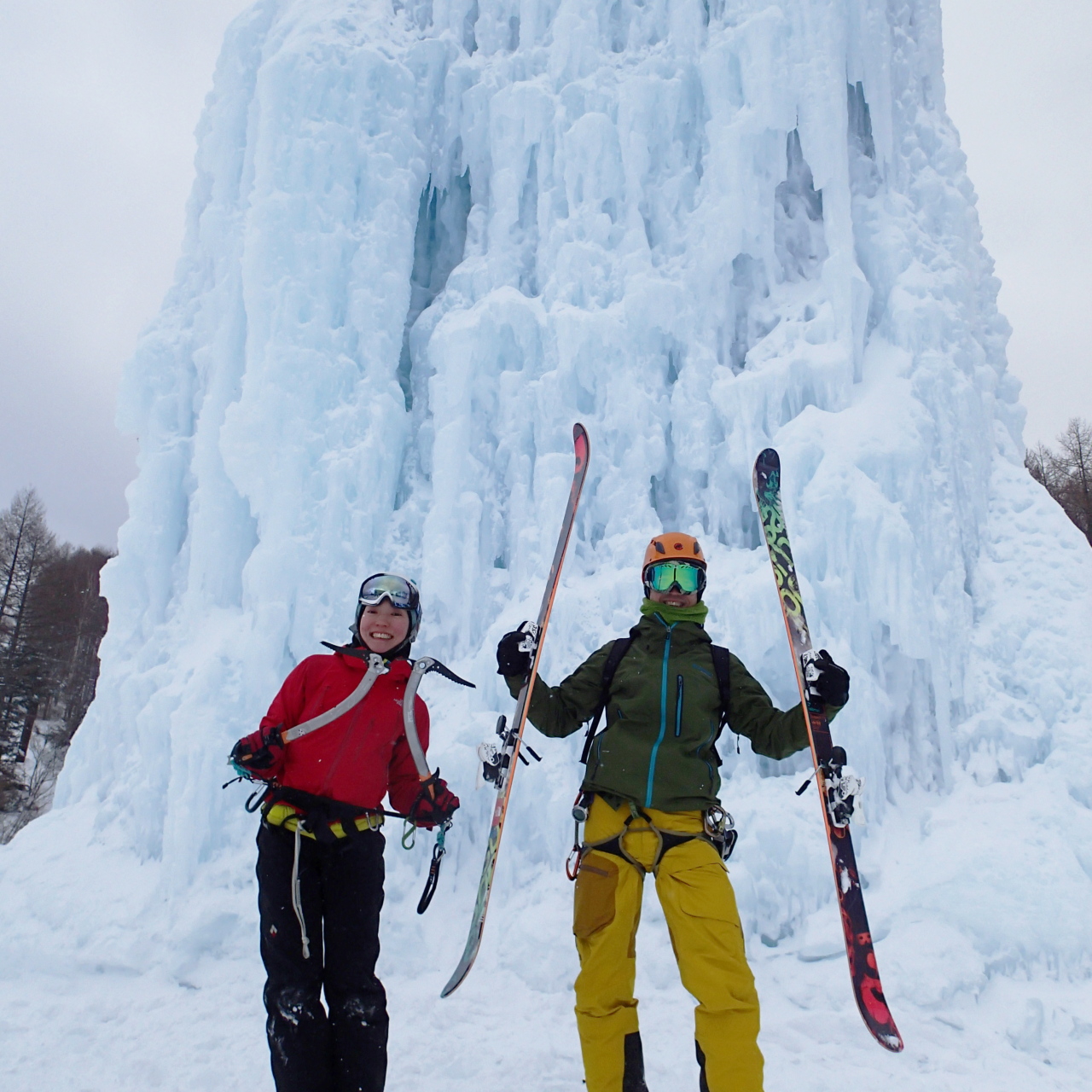 夢のスキーとアイスクライミングのコラボレーションを期待して行きましたが、1日じゃあなかなか、両方ともやりこめないっす。スキーはまた今度。帰りの路面はすっかり雪がとけていて、マイアは吹雪だったのに、こうも違うのかと驚きました。久々のデートを満喫できました♪