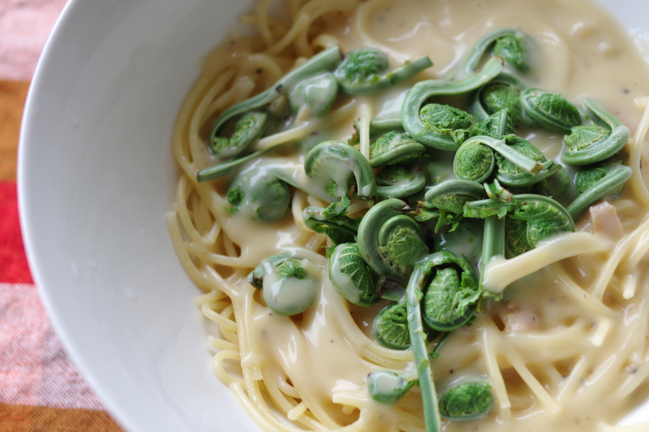 山に行ってみたら雪が全然ないどころか、新緑がまぶしくてすっかり春の様相。山は条件が悪く早々にあきらめて下山することにしたけど、どこにでもあると言われながらも今までベストなタイミングで会えてこなかったコゴミが(コゴミは生長が早い!)、今が最高ですといわんばかりの状態であった。コゴミは茹でるだけで食べられる、調理しやすい食材。茹でる前は濃い緑で、たぶん栄養も豊富! もっとゴツイものもあって、見た目がグロテスクなので初めて食べた時は勇気が必要だったけれど、今は軸が細めのものを選んでいるから平気。その方が食感もいい。私は茹でてマヨネーズが好きだけど、今日はカルボナーラに混ぜて食べてみた。うん、これもいける。あとはうどんなどの汁物に入れるのも好きです。 ※山菜は公的には採取禁止ですが、たまたま登山に来た人が家庭のちょっとしたおかずにするくらいは許容範囲と思ってます。